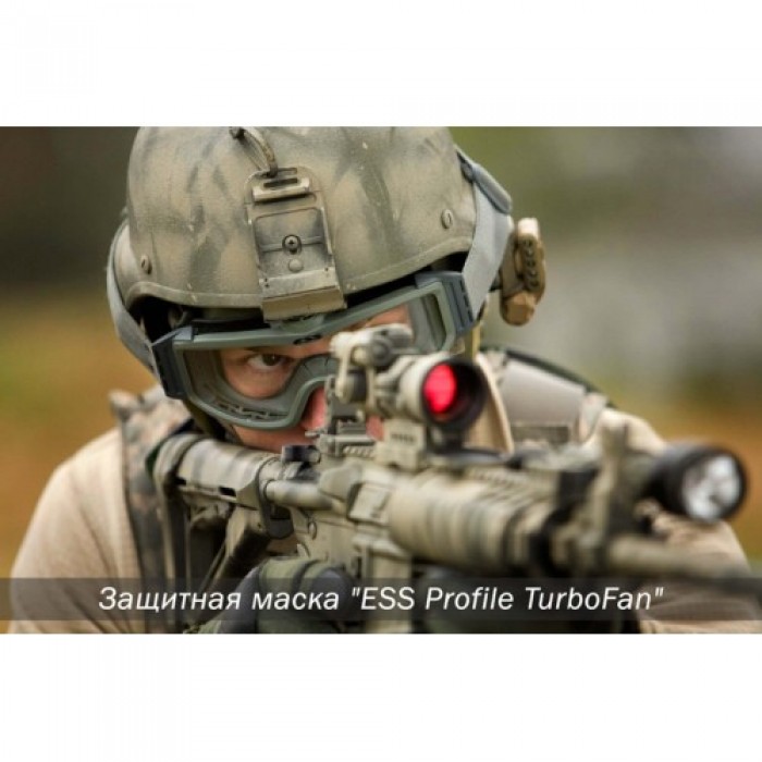 Данная защитная маска "ESS Profile TurboFan" Desert является любимой маской спецподразделений США (U.S. Special Forces groups). Она признана самой эффективной баллистической защитной маской для использования с приборами ночного видения. Это обусловлено высокой степенью защиты от запотевания (наличие принудительной системы вентиляции).